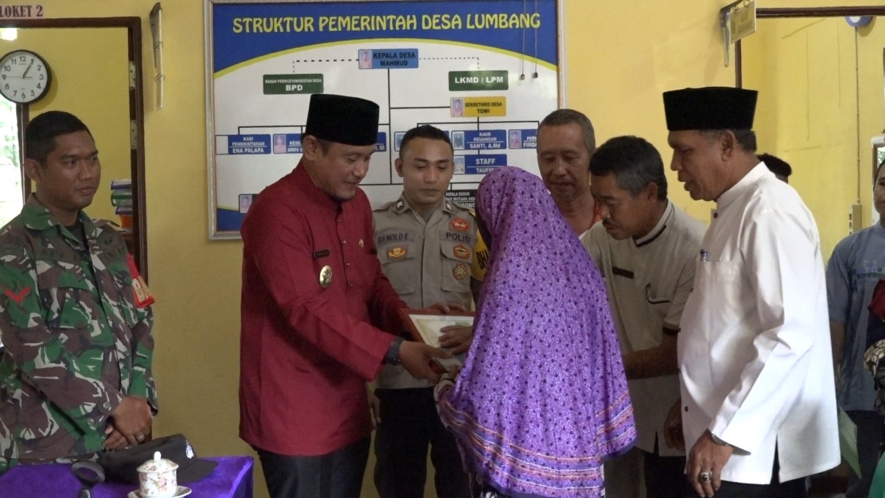 Sambas, Kalbar – Wakil Bupati Sambas Fahrur Rofi menyerahkan Bantuan Langsung Tunai Dana Desa (BLT-DD) tahap ke 11 tahun 2022 secara simbolis di Aula Kantor Desa Lumbang, Kecamatan Sambas, Kabupaten Sambas, Jumat (4/11).
