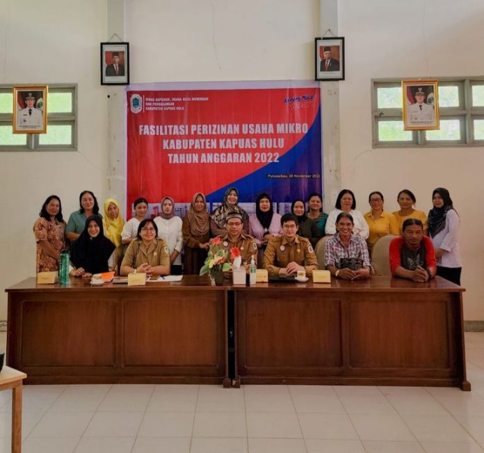 Kapuas Hulu, Kalbar – Dinas Koperasi UKM dan Perdagangan dengan Dinas Penanaman Modal dan Pelayanan Terpadu Satu Pintu Kabupaten Kapuas Hulu menyelenggarakan Kegiatan Fasilitasi Pelaku Usaha Mikro Tahap 2 (dua) yang ada di Kapuas Hulu untuk membuat Nomor Induk Berusaha (NIB) melalui Online Single Submission (OSS) Versi RBA, dilaksanakan di Aula Dinas Koperasi UKM dan Perdagangan pada hari Senin (28/11).