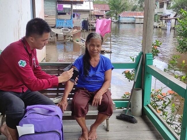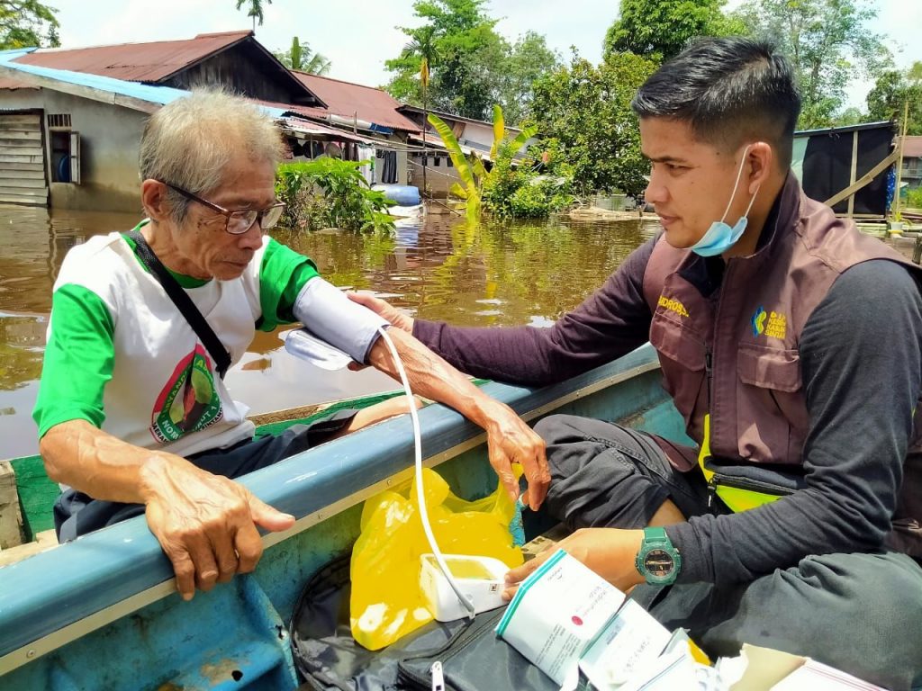 Ia mengatakan, petugas kesehatan sudah melakukan pelayanan kesehatan keliling ke tempat – tempat pengusian atau ke masyarakat yang belum mengungsi tapi masih bertahan di rumahnya, di lantai dua.