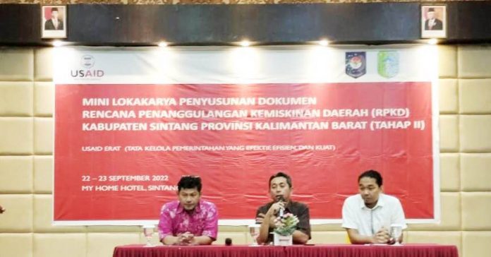 Sintang, Kalbar – Badan Perencanaan Pembangunan Daerah (Bappeda) Kabupaten Sintang melaksanakan lokakarya penyusunan draf akhir Dokumen Rencana Penanggulangan Kemiskinan Daerah (RPKD) Kabupaten Sintang Tahun 2022-2026 di Hotel My Home Sintang.