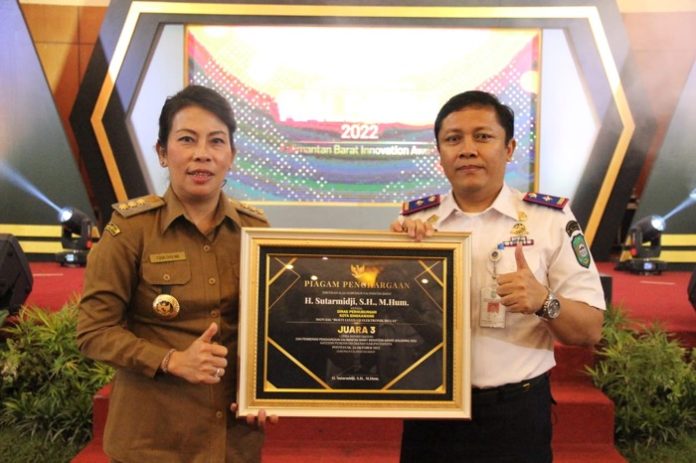 Singkawang, Kalbar – Inovasi Bukti Lulus Uji Elektronik (BLU-E) Dinas Perhubungan Kota Singkawang meraih Juara III Lomba Inovasi Daerah dan pemberian penghargaan Kalimantan Barat Innovative Award (KALBARIA) kategori pemerintah daerah Kabupaten/Kota Tahun 2022 di Hotel Aston Pontianak.
