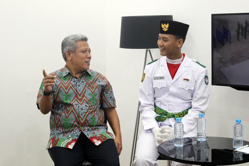 Kubu Raya, Kalbar – Muhammad Tegar Vanisa, anggota Pasukan Pengibar Bendera Kabupaten Kubu Raya, yang juga merupakan pelajar Pondok Pesantren Khulafur Rasyidin Kembali berbagi kisah di acara Triponcast (Tribun Pontianak Official Podcast) pada Jumat (26/8) bersama Bupati Kubu Raya Muda Mahendrawan terkait aksi heroiknya saat Upacara Pengibaran Bendera di Halaman Kantor Bupati Kubu Raya pada 17 Agustus lalu.