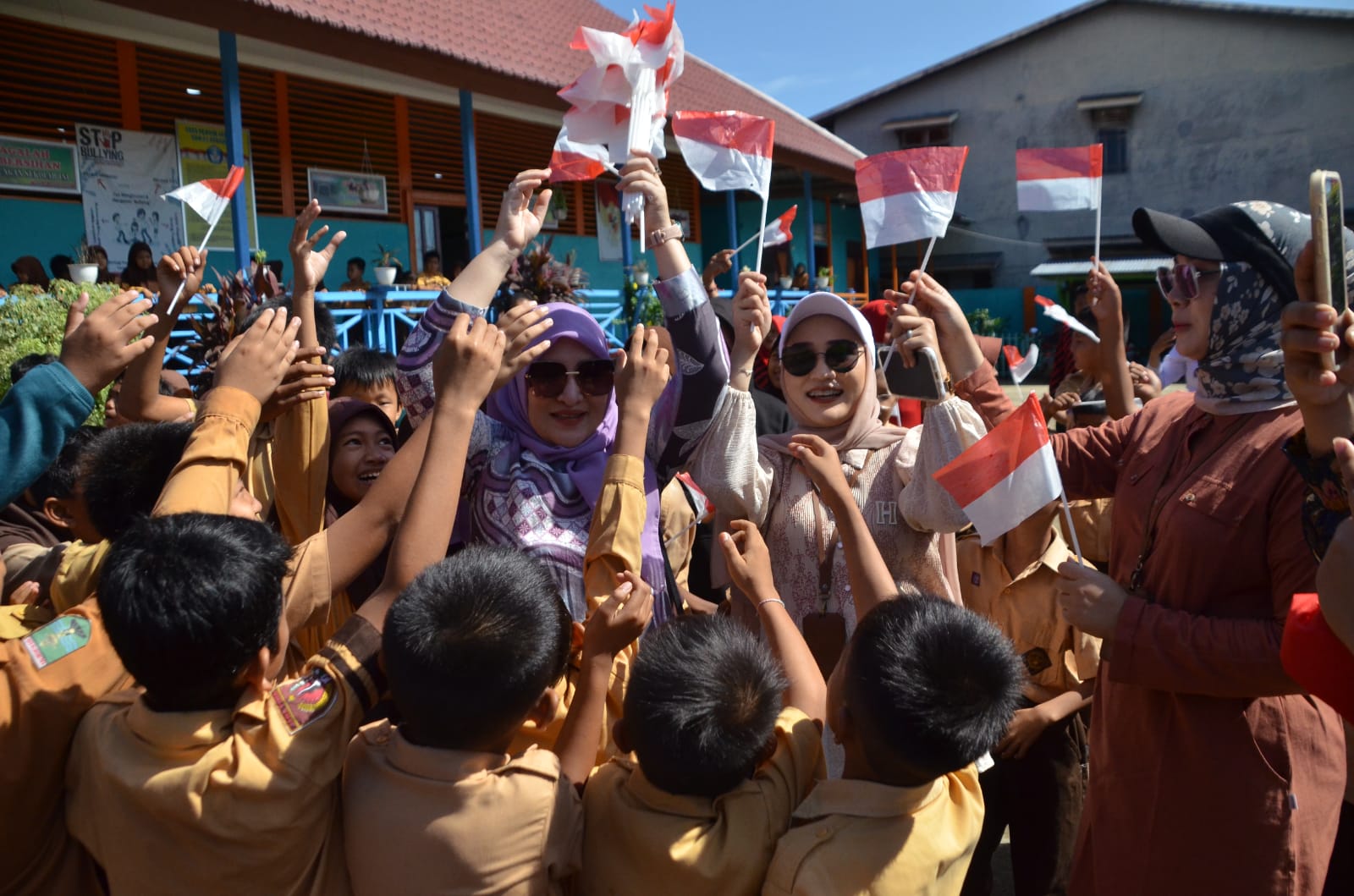 “Kita sengaja datangi anak-anak sekolah ini karena usia dini anak-anak kita ini, memang harus kita tumbuhkan semangat patriotisme,” ucap Citra Duani.