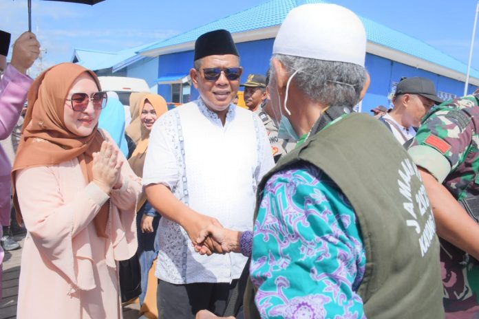 Teluk Batang, Kalbar – Bupati Kayong Utara Citra Duani bersama Wakil Bupati Effendi Ahmad menyambut kedatangan jama’ah haji kayong utara di Masjid Babul Mukminin Kecamatan Teluk Batang.