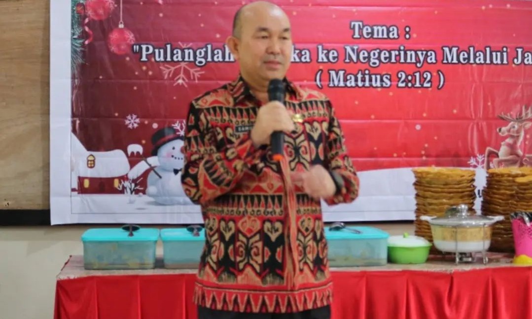 Landak, Kalbar – Pj. Bupati Landak Samuel, SE, M.Si menghadiri acara Natal Bersama Sekaligus Open House Kantor Camat Kuala Behe. Turut hadir Bupati Landak Periode 2017-2022 dr. Karolin Margret Natasa, MH, Anggota DPRD Kabupaten Sanggau, Kepala Dinas PUPR-PERA Kabupaten Landak, Forkompimcam Kuala Behe, Kepala Puskesmas Kuala Behe, Kepala Desa dan tamu undangan lainnya. Bertempat di Aula Kantor Camat Kuala Behe, Kamis (29/12).