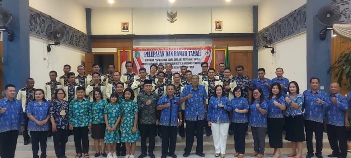 Sintang, Kalbar – Bupati Kabupaten Sintang, Jarot Winarno melepas keberangkatan 34 orang peserta serta official dari Lembaga Pembinaan dan Pengembangan Pesparani Katolik Kabupaten Sintang untuk berangkat menuju Kota Kupang Provinsi Nusa Tenggara Timur di Pendopo Bupati Sintang.