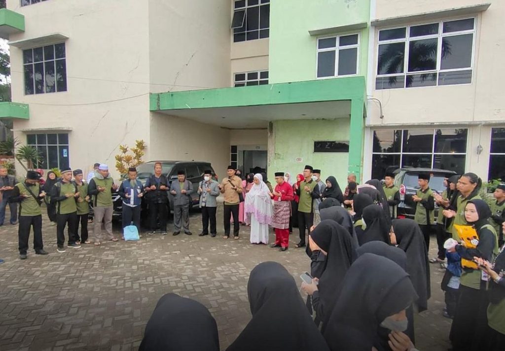 Bupati Mempawah Erlina seusai melaksanakan Safari Fajar mendatangi langsung rombongan Kabupaten Mempawah yang akan berangkat menggunakan pesawat terbang.