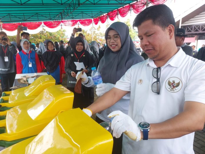 Sambas, Kalbar – Bupati Sambas, H. Satono, S.Sos.I, MH Canangkan Aku Hatinya PKK serta Launching Program Gerakan Ambil Sampah Keluarga Berkemajuan (GAS KAN) di Lapangan Tenis Kabupaten Sambas Desa Lorong Kecamatan Sambas, Jum’at (8/3).