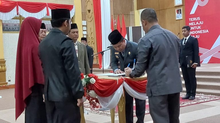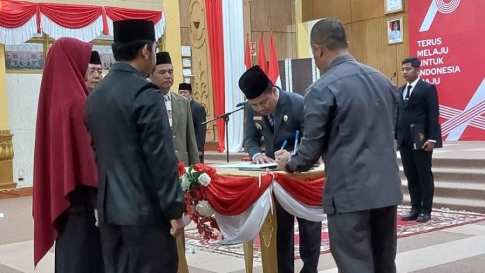Sambas, Kalbar – Bupati Sambas H. Satono, melantik sebanyak 89 Pejabat Administrator dan Pengawas di lingkungan Pemerintah Kabupaten Sambas, di Aula Utama Kantor Bupati Sambas. Jumat (18/08/2023) malam.