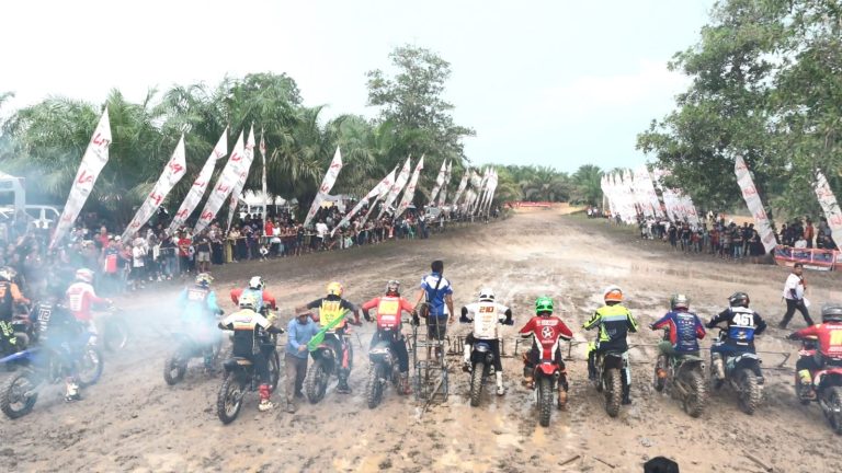 Sambas, Kalbar – Bupati Sambas H. Satono, menyaksikan Kejurprov Grass Track 2023 Kalimantab Barat yang bertempat di Sirkuit Batu Bekajang Desa Rantau Panjang Sebawi Minggu 6 Agustus 2023. Hadir juga menemani Kapolres Sambas Sugiatmo, Ketua IMI Kalbar H. Yuliansyah dan anggota DPRD Kab. Sambas Bui Kiong. Kejurprov yang berlangsung di Batu Bekajang ini di ikuti oleh 106 Croser yang datang dari berbagai kabupaten di Kalimantan Barat.
