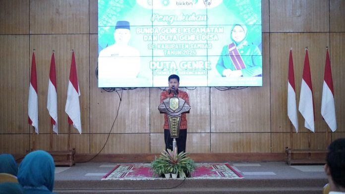 “kita akan memberikan edukasi terkait stunting kepada duta genre ini dengan harapan di transfer kembali kepada remaja-remaja yang ada di Kabupaten Sambas melalui Duta Genre Desa yang kita kukuhkan pada hari ini” tambahnya.
