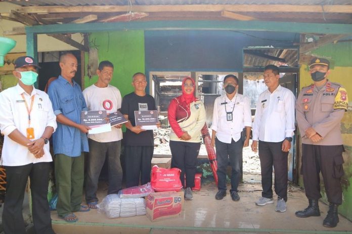 Mempawah, Kalbar – Bupati Mempawah Erlina menyerahkan bantuan bagi korban kebakaran yang terjadi beberapa waktu lalu, di Kelurahan Pasir Wan Salim, Kecamatan Mempawah Timur, Rabu (24/8).