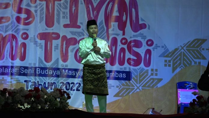 Sambas, Kalbar – Bupati Sambas H. Satono didampingi Wakil Ketua DPRD Sambas Ferdinan Syolihin, Camat Tebas, dan OPD terkait menghadiri penutupan Festival Seni Tradisi Sambas, di Mensere, Kecamatan Tebas, Sabtu (24/12).