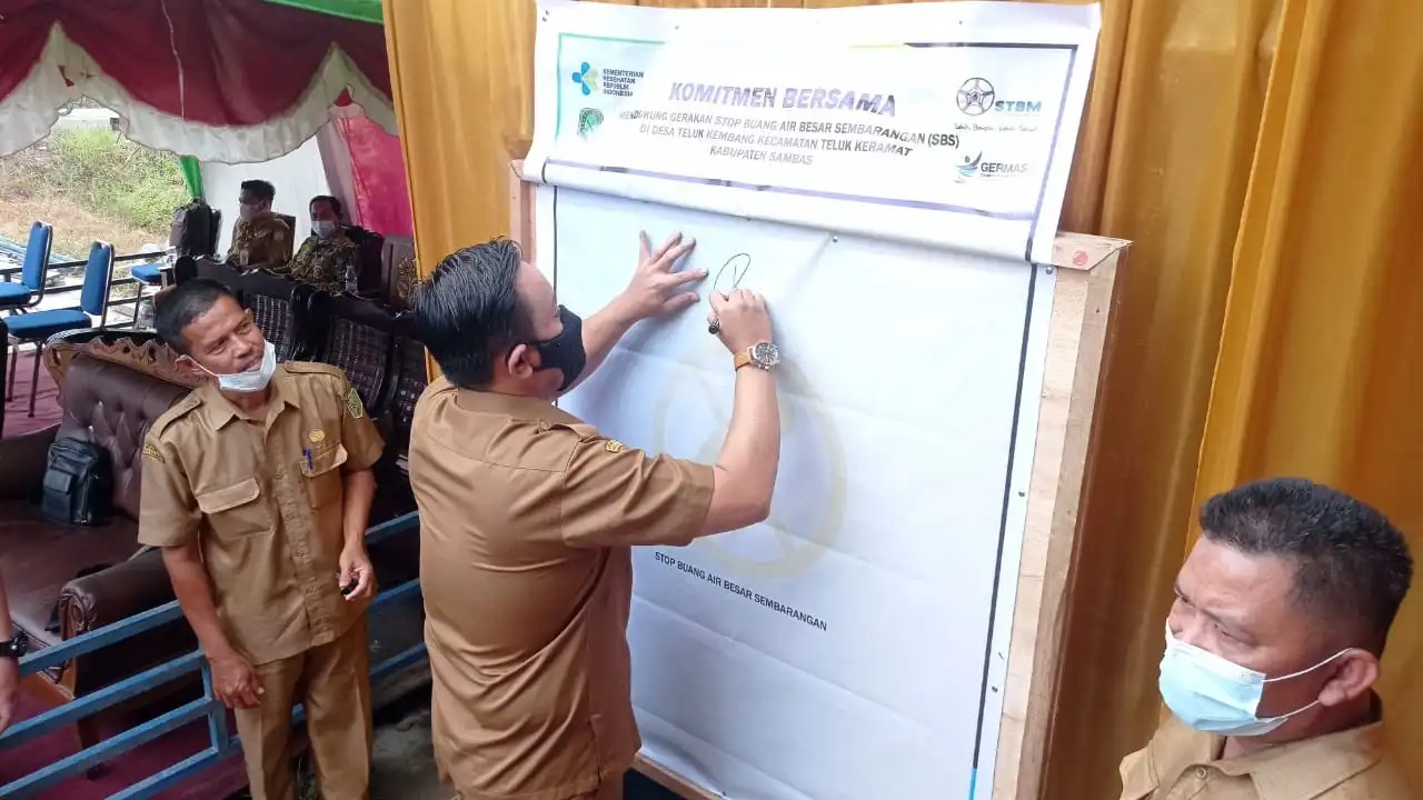 Sambas, Kalbar – Wakil bupati Sambas, Fahrur Rofi membuka kegiatan deklarasi ODF (Open Defectation Free) di Desa Teluk Kembang kecamatan Teluk Keramat, Selasa (15/3). Dengan mengusung tema dengan deklarasi mari kita wujudkan lingkungan desa Teluk Kembang yang bersih dan sehat sehingga menciptakan generasi unggul dan berkualitas. Deklarasi ini dihadiri oleh Kepala Dinas kesehatan Kabupaten Sambas, Forkopimda, Camat Teluk Keramat, Perangkat Desa Teluk kembang Pengurus PKK Se-Kecamatan Teluk keramat.