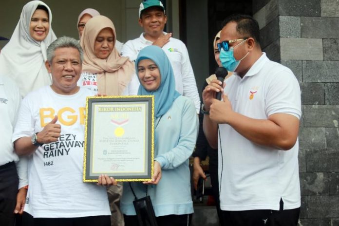 Kubu Raya, Kalbar – Bupati Kubu Raya Muda Mahendrawan menerima Piagam Penghargaan Museum Rekor-Dunia Indonesia yang dianugerahkan kepada Dinas Kesehatan Kabupaten Kubu Raya atas rekor Pengukuran Kebugaran Jasmani dengan Metode Rockport Serentak di Lokasi dan Peserta Terbanyak, Jumat (4/11), di Halaman Kantor Bupati Kubu Raya.
