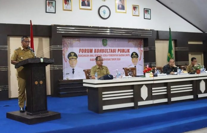 Bengkayang, Kalbar – Pemerintah Kabupaten Bengkayang mengadakan Forum Konsultasi Publik Rancangan Awal Rencana Kerja Pembangunan Daerah (RKPD) Kabupaten Bengkayang Tahun 2024. Forum Konsultasi Publik ini yang difasilitasi oleh Badan Perencanaan Pembangunan Daerah (Bappeda) Kabupaten Bengkayang digelar di Aula II Kantor Bupati Bengkayang pada Selasa (7/2).