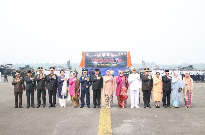 Kubu Raya, Kalbar – Penjabat (Pj) Gubernur Kalimantan Barat dr. H.Harisson, M.Kes., menghadiri upacara Dalam rangka memperingati Hari Ulang Tahun (HUT) Tentara Nasional Indonesia (TNI) ke-78 Tahun 2023 yang dilaksanakan di Apron Landasan Udara (Lanud) Supadio Kubu Raya, Kamis (5/10).