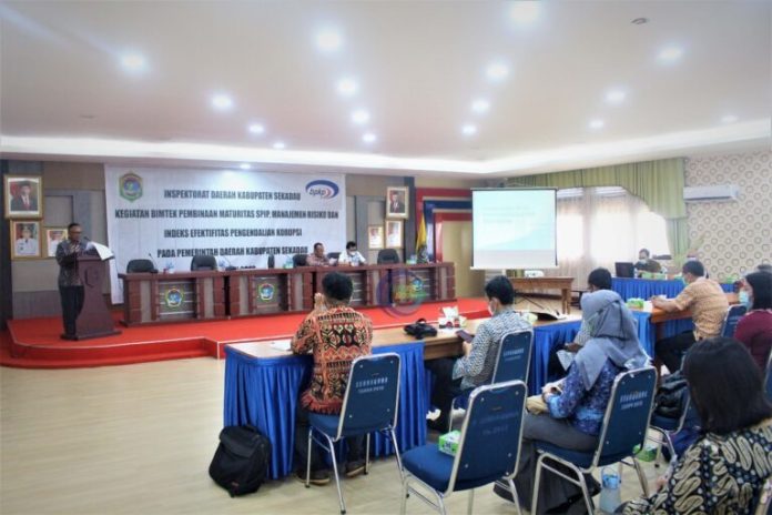 Sekadau, Kalbar – Inspektorat Daerah Kabupaten Sekadau menggelar Kegiatan Bimtek Pembinaan Maturitas Sistem Pengendalian Intern Pemerintah (SPIP) Manajemen Resiko dan Indeks Efektifitas Pengendalian Korupsi pada Pemerintah Daerah Kabupaten Sekadau yang dilaksanakan di Aula Serbaguna Kantor Bupati Sekadau, Kecamatan Sekadau Hilir, Kabupaten Sekadau, Kamis, (24/2).
