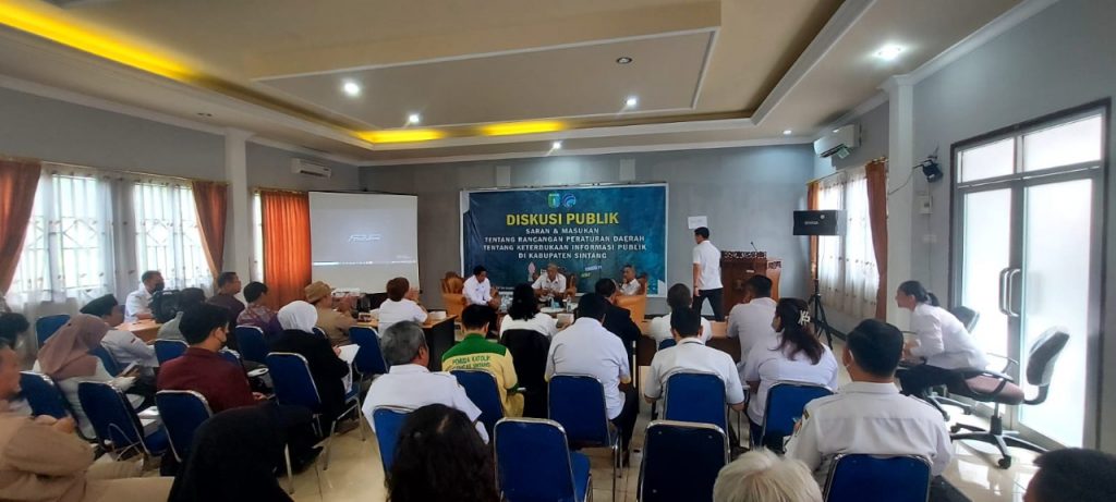 Sintang, Kalbar – Dinas Komunikasi dan Informatika Kabupaten Sintang menggelar diskusi publik untuk menghimpun masukan dan saran dari masyarakat terhadap rancangan perda yang dilaksanakan di Aula Bappeda Kabupaten Sintang, Rabu (19/10).