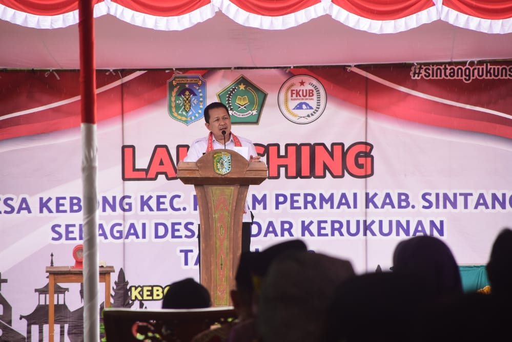 Sintang, Kalbar – Gubernur Kalimantan Barat yang diwakili oleh Kepala Badan Kesatuan Bangsa dan Politik Provinsi Kalimantan Barat Drs. Hermanus, M. Si melaunching Desa Kebong sebagai Desa Sadar Kerukunan di Kabupaten Sintang pada Rabu (14/9) di Halaman Kantor Camat Kelam Permai.