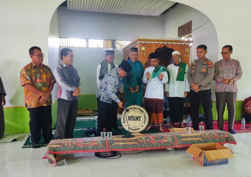 Sekadau, Kalbar – Bupati Sekadau Aron didampingi Ketua TP.PKK Kabupaten Sekadau Ny.Magdalena Susilawati Aron menghadiri kegiatan Maulid Tradisional Al Barzanji yang dilaksanakan di Masjid Nurul Yaqin, Desa Nanga Koman, Kecamatan Nanga Taman, Kabupaten Sekadau, Sabtu (21/1).