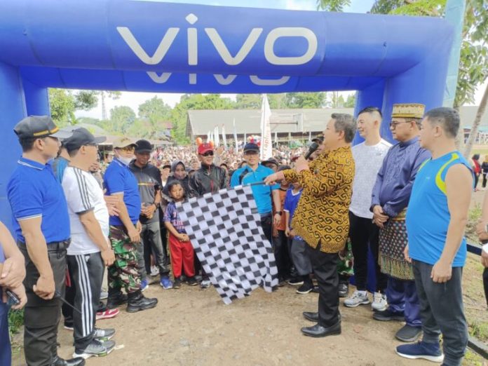 Sekadau, Kalbar – Wakil Bupati Sekadau, Subandrio lepas peserta jalan sehat dalam rangka Hari Ulang Tahun (HUT) Kabupaten Sekadau yang ke-19 yang bertempat di Rumah Betang Youth Center, Kecamatan Sekadau Hilir, Kabupaten Sekadau, Sabtu (17/12).