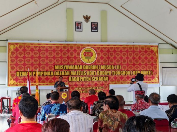 Sekadau, Kalbar – Bupati Sekadau Aron Buka Kegiatan Musyawarah Daerah (Musda) III Dewan Pimpinan Daerah Majelis Adat Budaya Tionghoa (DPD MABT) bertempat di Aula Hotel Multi Sekadau, Kecamatan Sekadau Hilir, Kabupaten Sekadau, Jumat (21/10).