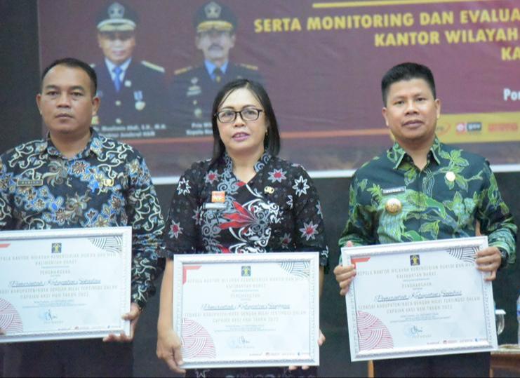 Sambas, Kalbar – Pemerintah Kabupaten Sambas menerima penghargaan dari Kantor Wilayah Kementerian Hukum dan Hak Asasi Manusia (HAM) Provinsi Kalbar sebagai kabupaten dengan nilai tertinggi dalam capaian aksi HAM 2022.