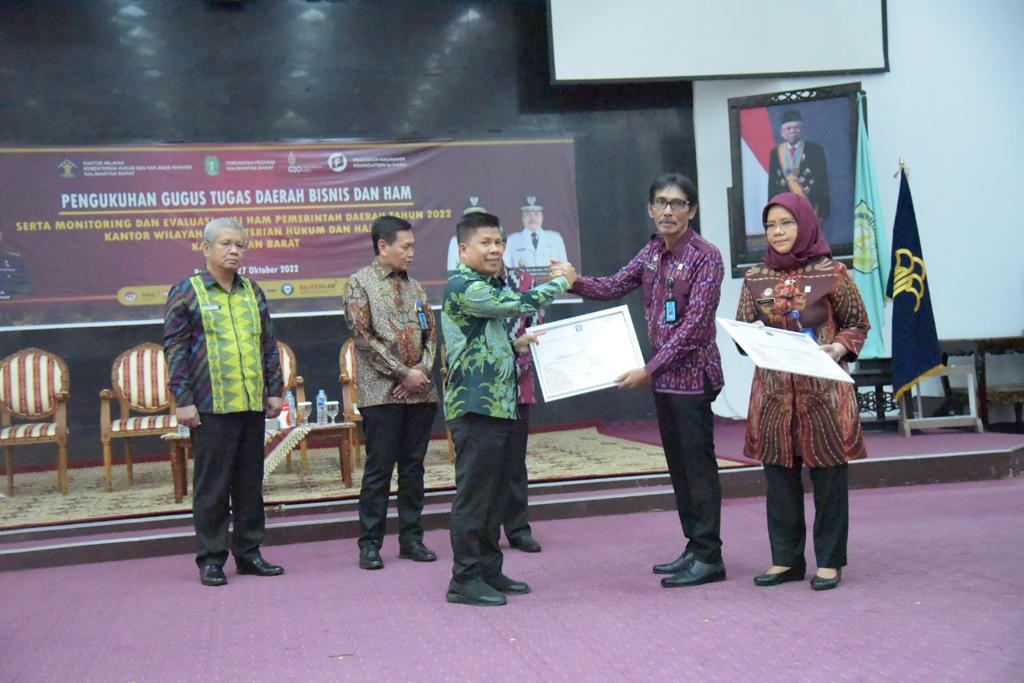 Penghargaan yang diterima Bupati Sambas H. Satono tersebut, dilakukan setelah kegiatan Pengukuhan Gugus Tugas Daerah Bisnis dan HAM Serta Monitoring dan Evaluasi Aksi HAM Pemerintah Daerah 2022 di Kantor Wilayah Kementerian Hukum dan HAM Kalimatan Barat.