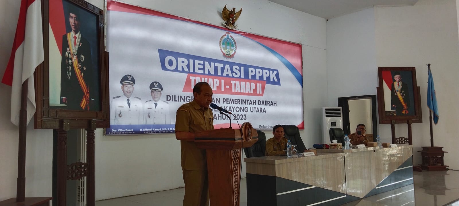 Kayong Utara, Kalbar – Pj Sekretaris Daerah Kabupaten Kayong Utara, Oma Zulfithansyah menghadiri sekaligus membuka kegiatan Orientasi PPPK Tahap I dan Tahap II di lingkungan pemerintah Kabupaten Kayong Utara Tahun 2023, bertempat di Aula Istana Rakyat, Sukadana, Senin (3/06/2023).