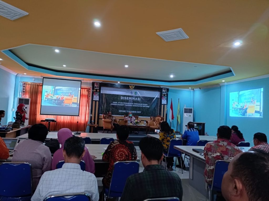 Sintang, Kalbar – Tim Ground Work Analysis Green Budget Tagging Kabupaten Sintang Tahun 2022 melakukan presentasi hasil analisis mereka terhadap APBD Kabupaten Sintang Tahun 2021 dan 2022 di Aula Bappeda Kabupaten Sintang pada Kamis (8/12).