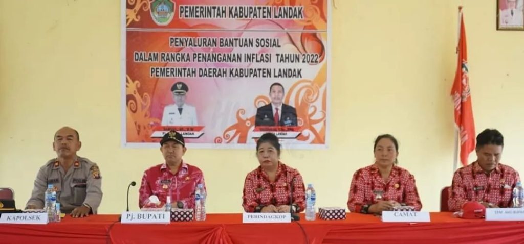 Landak, Kalbar – Pemerintah Kabupaten Landak kembali menyalurkan bantuan sosial dalam rangka penanganan inflasi tahun 2022 di Kantor Camat Meranti, Kabupaten Landak, Jumat (18/11).