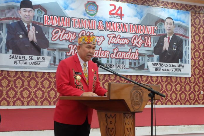 “Hari ini, Kabupaten Landak merayakan ulang tahunnya yang ke-24. Jika dibandingkan dengan usia manusia, usia ini menunjukkan kematangan dan masa produktif, baik dalam pemikiran, perilaku, maupun tindakan. Oleh karena itu, perayaan hari ulang tahun ini bukan hanya seremonial semata, melainkan momen penting untuk meningkatkan semangat, integritas, dan kerja sama guna mewujudkan Kabupaten Landak yang lebih mandiri, maju, dan sejahtera,” ujar Samuel.