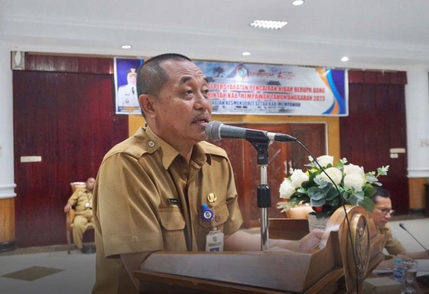 Mempawah, Kalbar – Asisten Ekonomi Pembangunan dan Kesra Rochmat Effendy menyampaikan bahwa yang demikian merupakan salah satu usaha Pemerintah Kabupaten Mempawah dalam meningkatkan kesejahteraan sosial masyarakat melalui mekanisme pemberian bantuan sosial hibah berupa uang tunai berdasarkan pada regulasi peraturan Bupati Mempawah Nomor 42 Tahun 2021.