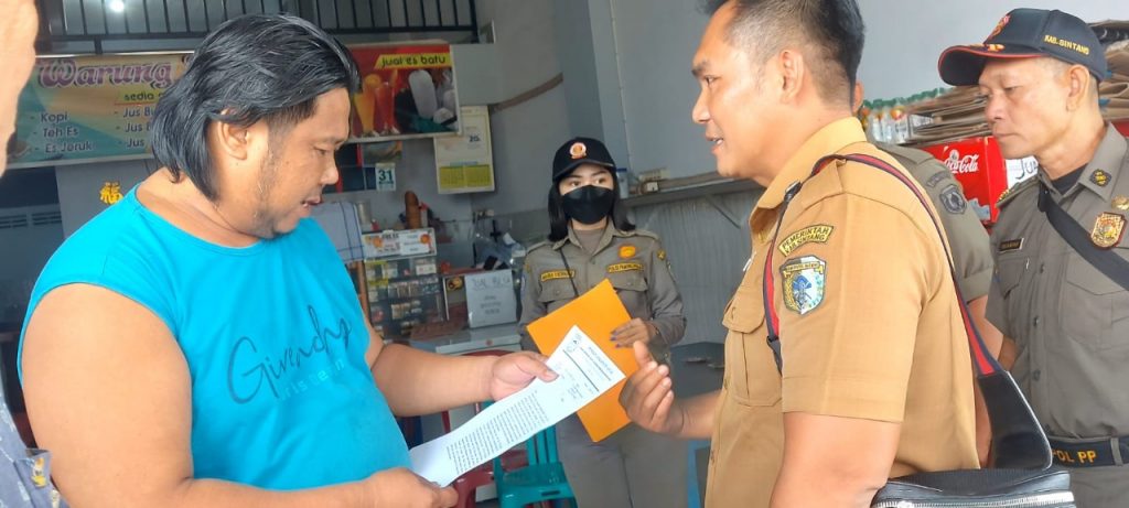 Sintang, Kalbar – Jajaran Pemerintah Kabupaten Sintang kembali menunjukan komitmen untuk mendukung penuh pembangunan pedestrian di Kawasan Pasar Sungai Durian. Hal tersebut ditunjukan dengan dilaksanakannya penyerahan Surat Peringatan (SP) kepada pemilik rumah toko yang menolak melakukan pemotongan kanopi yang melanggar aturan.