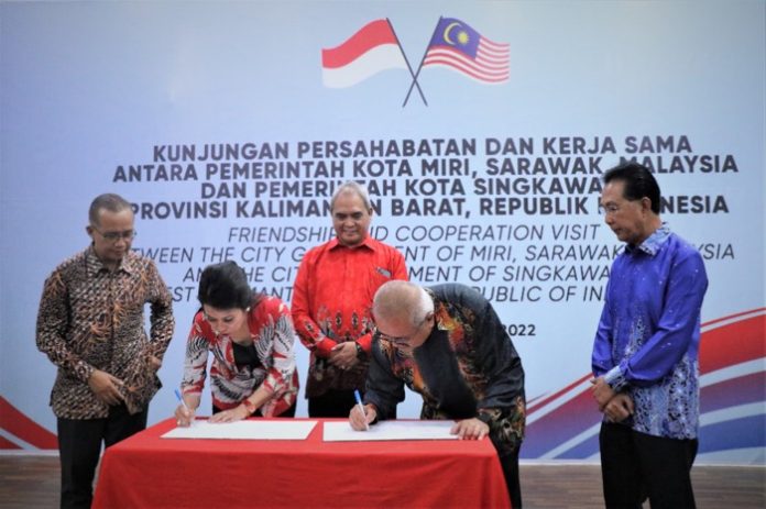 Singkawang, Kalbar – Pemerintah Kota Singkawang melakukan pertemuan dengan Konsulat Jenderal (Konjen) Republik Indonesia (RI) wilayah Kuching, Sarawak dan Malaysia bersama rombongan Pemerintah Kota Miri – Sarawak di Rumah Jabatan Wali Kota, Sabtu (1/10) malam. Hal ini ditandai dengan penandatangan kehendak kerjasama oleh kedua belah pihak, yaitu Pemerintah Kota Singkawang dan Pemerintah Kota Miri.