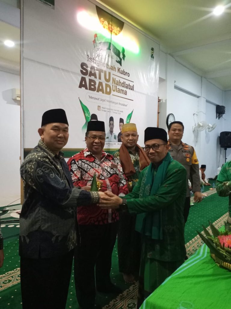 Dalam kesempatan tersebut Pj. Bupati Landak Samuel memberikan ucapan atas nama Pemerintah Kabupaten Landak, selamat Hari Ulang Tahun yang ke-100 Nahdlatul Ulama.
