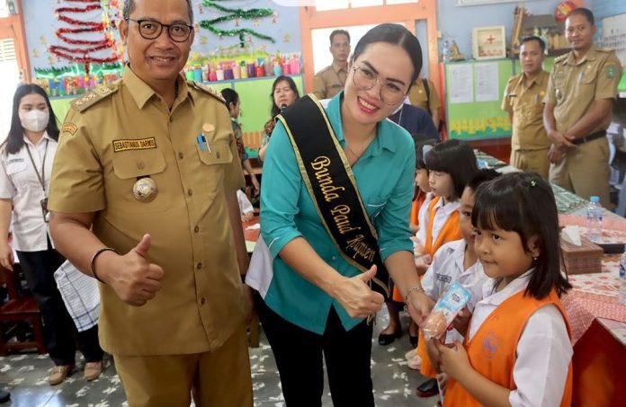 Bengkayang, Kalbar – TP PKK Kabupaten Bengkayang menggelar kegiatan Pemberian Makanan Tambahan (PMT) dalam rangka melakukan pencegahan stunting pada anak pra-sekolah, di Taman Kanak-kanak (TK) Amkur Bengkayang dan TK Negeri Pembina Bengkayang pada Selasa (14/2).