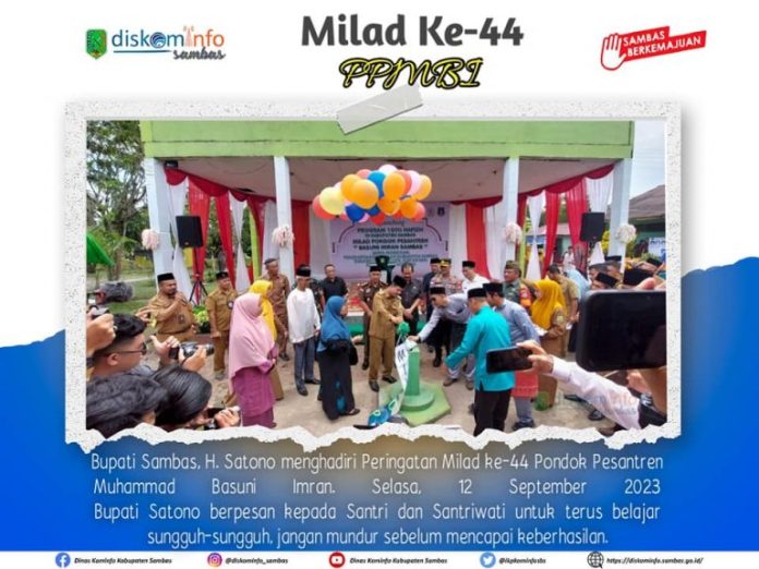 Sambas, Kalbar – Memasuki usia ke 44 tahun Pondok Pesantren Muhammad Basuni Imran (PPMBI) Sambas gelar peringatan milad yang ditandai dengan pelepasan balon oleh Bupati Sambas, H. Satono, di Kompleks PPMBI Sambas, Desa Dalam Kaum Kecamatan Sambas, Selasa, (12/9/2023).