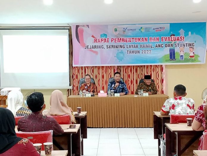 Kapuas Hulu, Kalbar – Dinas Kesehatan Pengendalian Penduduk dan Keluarga Berencana (Dinkes PP dan KB) Kabupaten Kapuas Hulu melalui Bidang Kesehatan Masyarakat (Kesmas) menyelenggarakan Rapat Pembentukan dan Evaluasi Jejaring skrining Layak Hamil, ANC (Antenatal Care) dan Stunting Tahun 2023 Kabupaten Kapuas Hulu di Aula Kantor Dinkes PP dan KB Kabupaten Kapuas Hulu. (8/12)