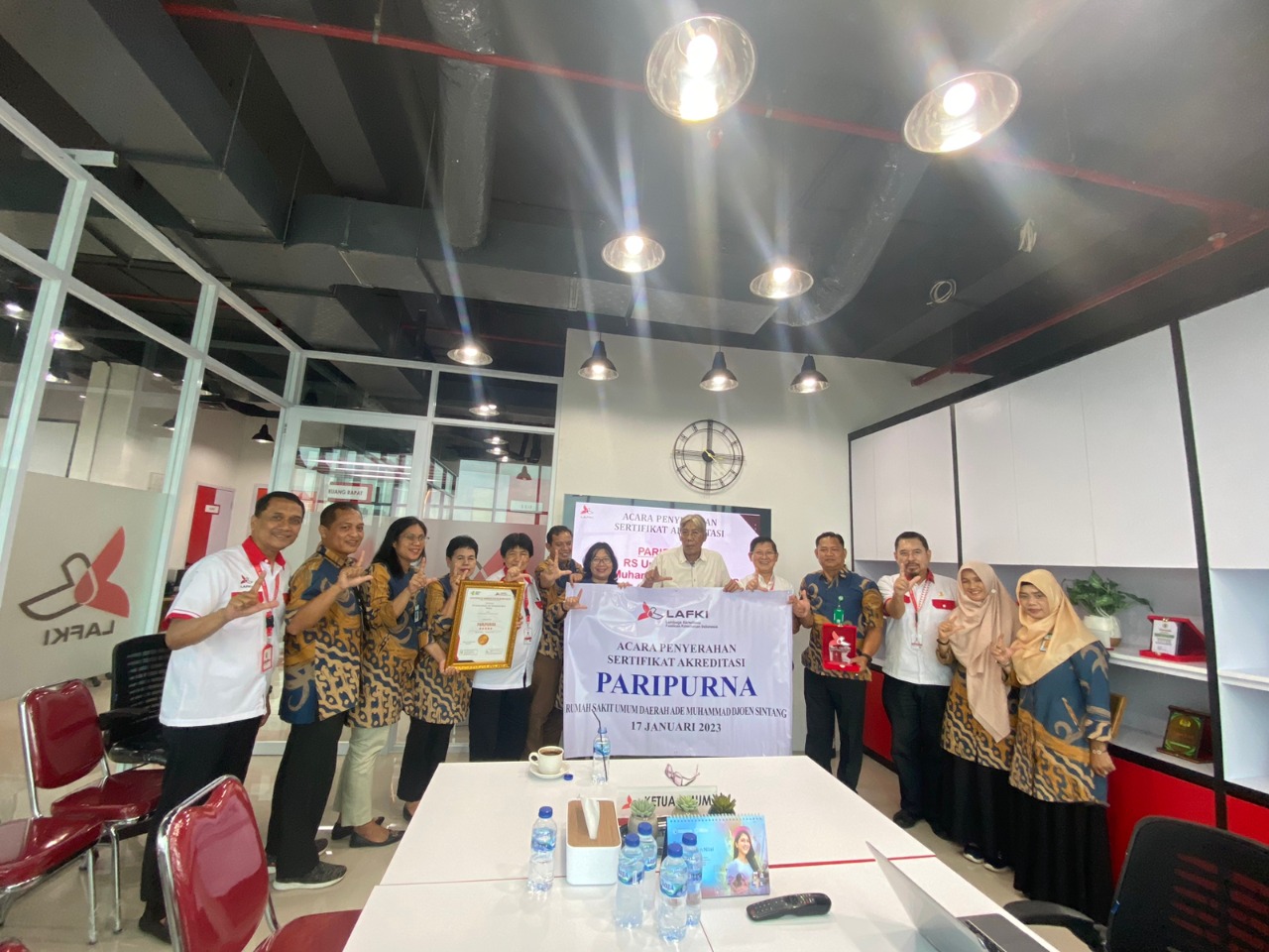 RSUD AM Djoen Sintang berhasil mendapatkan Predikat PARIPURNA dari LAFKI Jakarta. Sertifikat tersebut diserahkan oleh Ketua Dewan Pengawas LAFKI dr. Daniel Chen kepada Bupati Sintang dr. H. Jarot Winarno, M. Med.PH.
