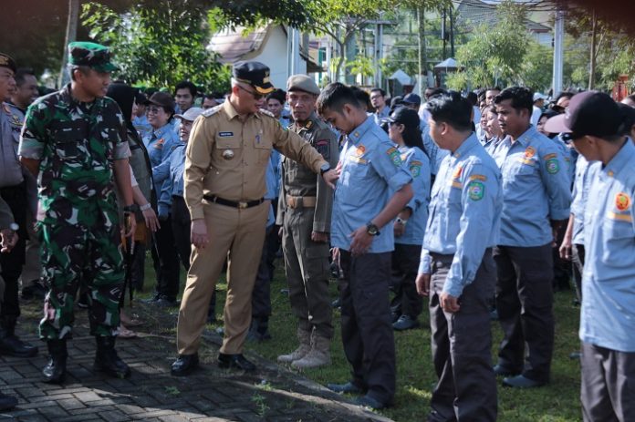 Singkawang, Kalbar – Satu hari menjelang hari Pencoblosan, Pemerintah Kota Singkawang melalui Satuan Polisi Pamong Praja (Satpol PP) menggelar Apel kesiapan Satuan Perlindungan Masyarakat (Satlinmas) guna mematangkan persiapan serta memastikan kelancaran penyelenggaraan Pemilihan Umum (Pemilu) tahun 2024 di Halaman Kantor Wali Kota, Selasa (13/02).