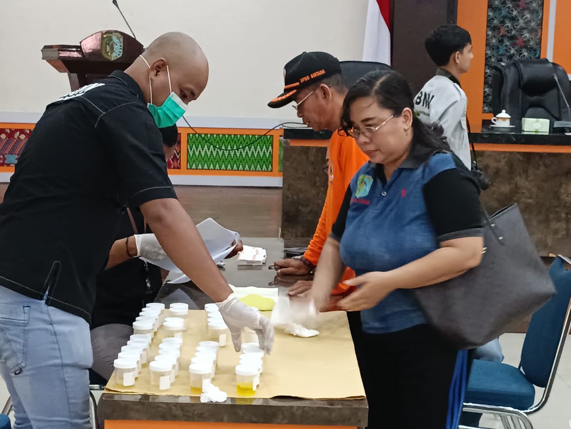 La Muati Kepala BNN Kabupaten Sintang menyampaikan apresiasi yang tinggi kepada Bapak Bupati Sintang dan jajaran Pemkab Sintang atas terlaksananya tes urin bagi pejabat eselon II dan III ini.