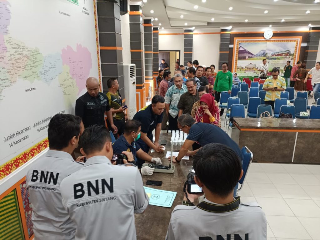“Sebanyak 73 pejabat eselon II dan III di lingkungan pemerintah Kabupaten Sintang sudah secara sukarela datang untuk di tes urinnya dan diperiksa. Hasilnya urin 73 orang tersebut negatif semuanya, ” terang La Muati Kepala BNN Kabupaten Sintang.