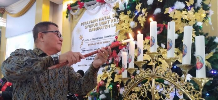Landak, Kalbar – Asisten Pemerintahan dan Kesejahteraan Rakyat Sekda Kabupaten Landak Yonas, S.Sos mewakili Pj. Bupati Landak Menghadiri Ibadah Perayaan Natal dan Ucapan Syukur Umat Kristen Kabupaten Landak,di Gereja PPIK Timotius Ngabang, Sabtu (21/1).
