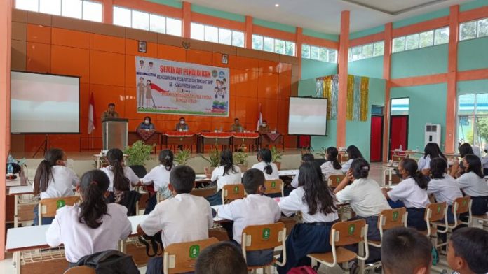 Sekadau, Kalbar – Bupati Sekadau Aron, menghadiri kegiatan Seminar Pendidikan yang ditujukan kepada Pendidik dan Peserta Didik Tingkat Sekolah Menengah Pertama Se-Kabupaten Sekadau.