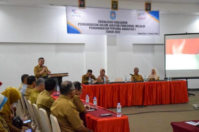 Kubu Raya, Kalbar – Sekretaris Daerah (Sekda) Kabupaten Kubu Raya Yusran Anizam membuka kegiatan Sosialisasi Kebijakan Pengangkatan dalam Jabatan Fungsional Melalui Pengangkatan Pertama Tahun 2023, di Hotel Dangau Kubu Raya, Selasa (7/2).