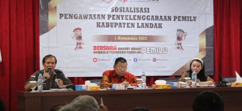 Landak, Kalbar – Sekretaris Daerah Kabupaten Landak Vinsensius menghadiri Sosialisasi Pengawasan Penyelenggaraan Pemilu Kabupaten Landak yang diselenggarakan oleh Bawaslu Republik Indonesia bersama Anggota Komisi II DPR RI Fraksi PDI Perjuangan Drs. Cornelis, MH, di Aula Hotel Hanura Ngabang, Selasa (1/11)