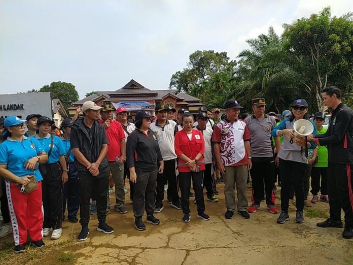 Landak, Kalbar -Staf Ahli Bupati Bidang Kemasyarakatan dan Sumber Daya Manusia Kabupaten Landak, yaitu Ocin, S.Pd, M.Pd, membuka rangkaian kegiatan Senam, Jalan Santai, Donor Darah, dan Lomba Kreasi Barang Bekas di Kecamatan Jelimpo, Kabupaten Landak, dalam rangka peringatan Hari Ulang Tahun ke-24 Pemerintah Daerah Kabupaten Landak pada Senin (09/10).