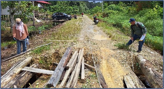 Tim survei melakukan pengecekan seperti pengukuran Panjang dan lebar jalan serta memperhatikan kelengkapan bangunan pelengkap lainya guna memastikan data-data yang berkaitan dengan penanganan yang ada diruas jalan tersebut bisa ditangani sesuai dengan yang diperuntukan.